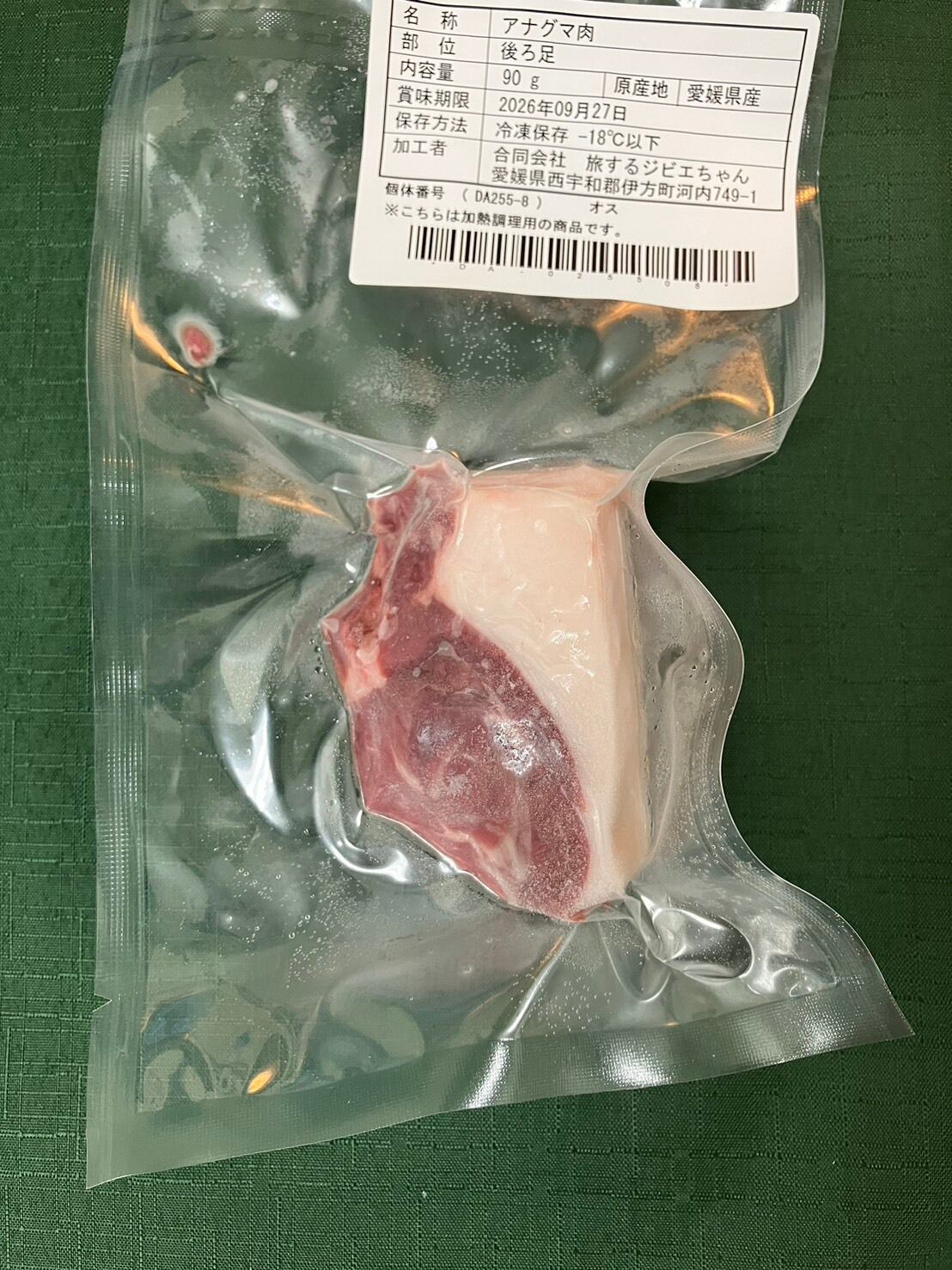【神出鬼没セール】アナグマ肉脂適量(愛媛県)70g【冷凍】【中級者向】