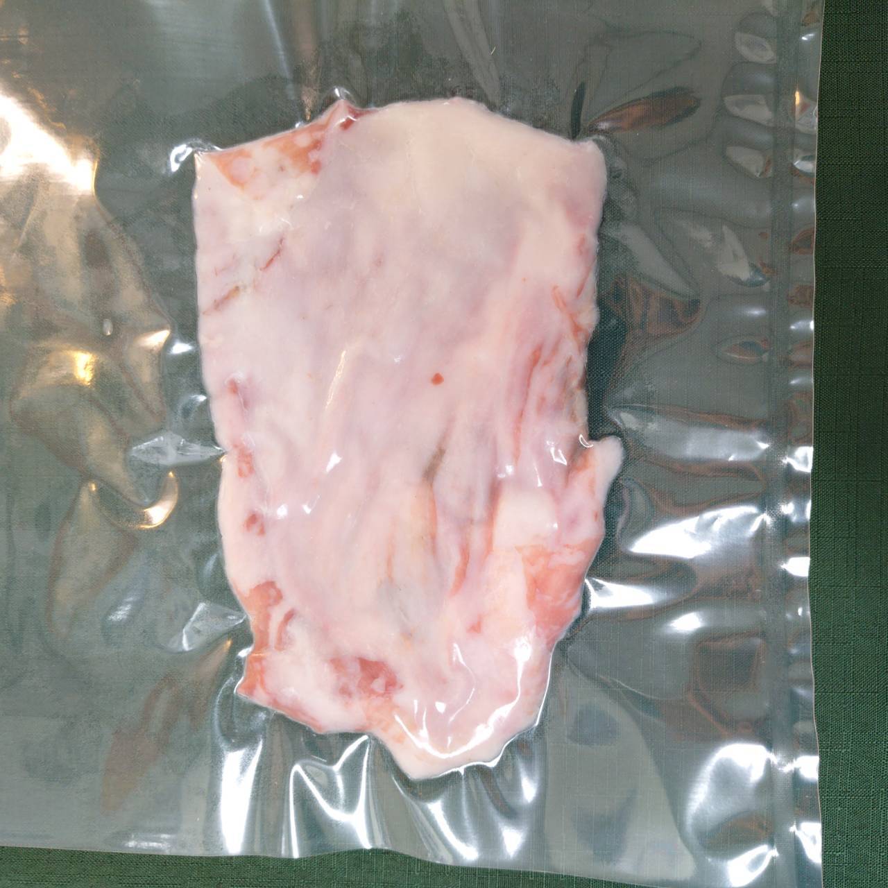 ●タヌキ肉。個体差が非常に激しいレア肉です。肉と脂の間にある膜。この膜で野菜巻いたら美味しいと思う!